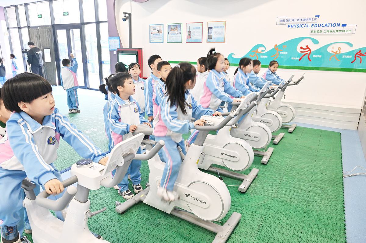 学生们通过智能体育设备体验运动竞技乐趣。记者 常鸣/摄